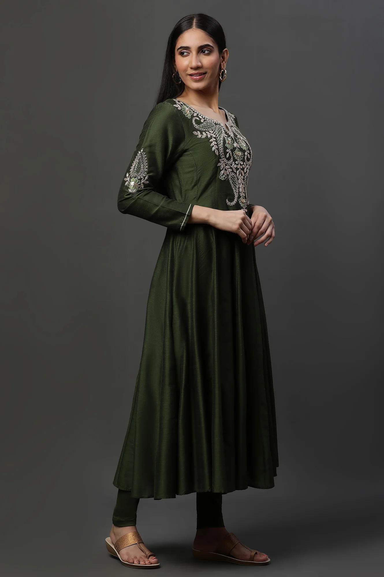 -70%Green Anarkali Dori Embroidered Kurta, Tights and Dupatta Set—