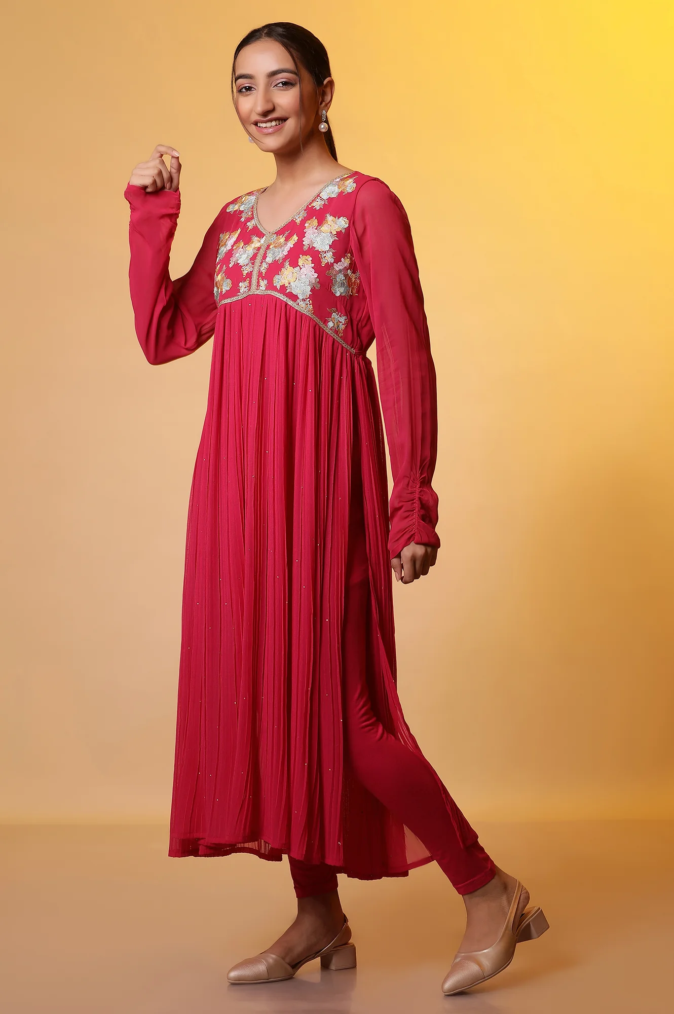 Pink Embroidered High-Slits Kurta, Tights and Dupatta Set