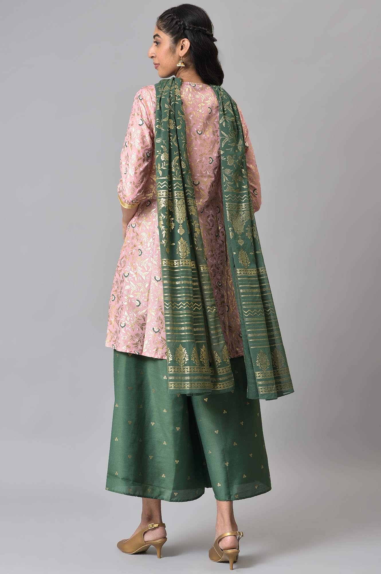 Pink Zari Embroidered kurta with Green Palazzo and Dupatta