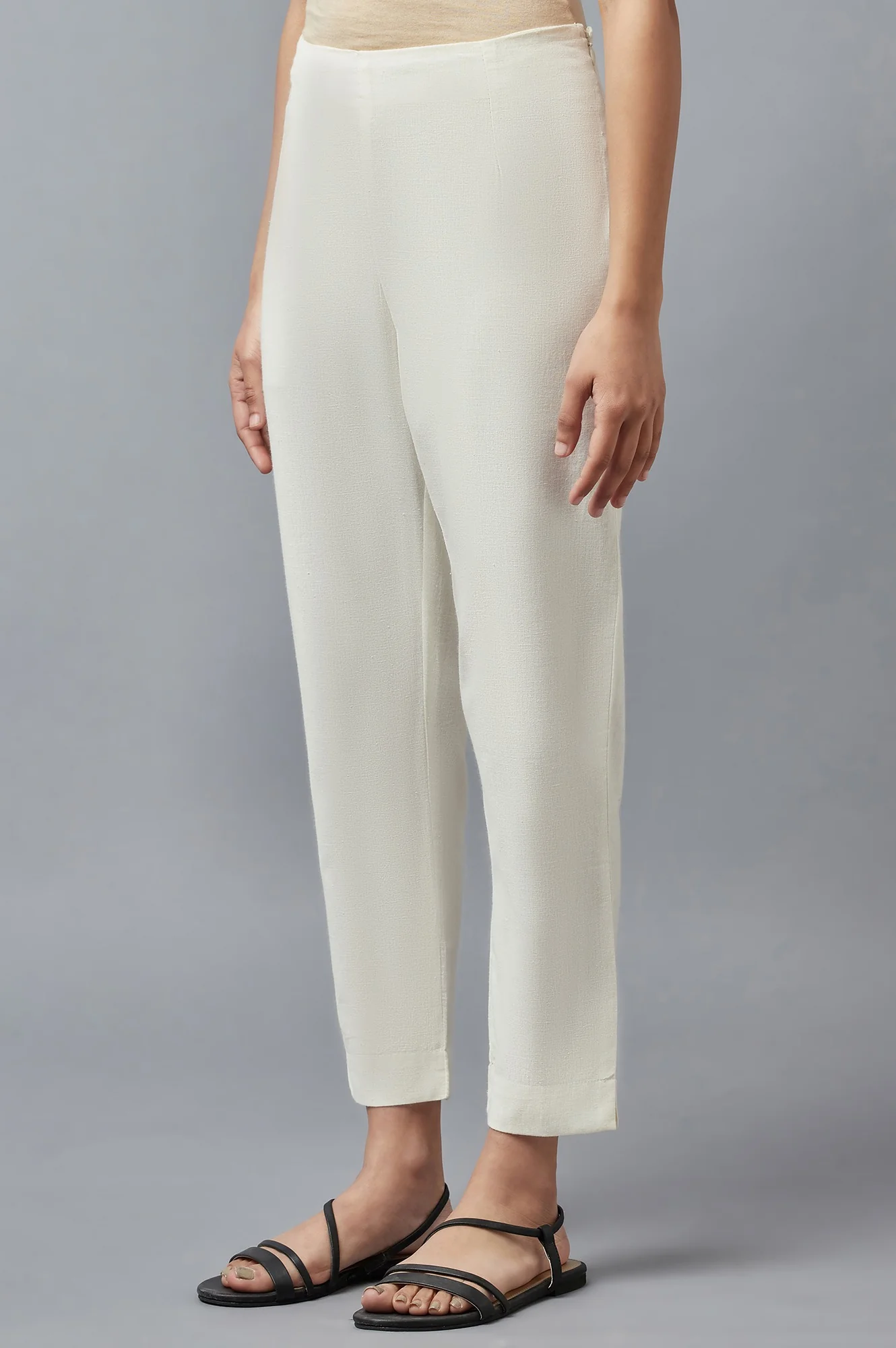 White Solid Trousers