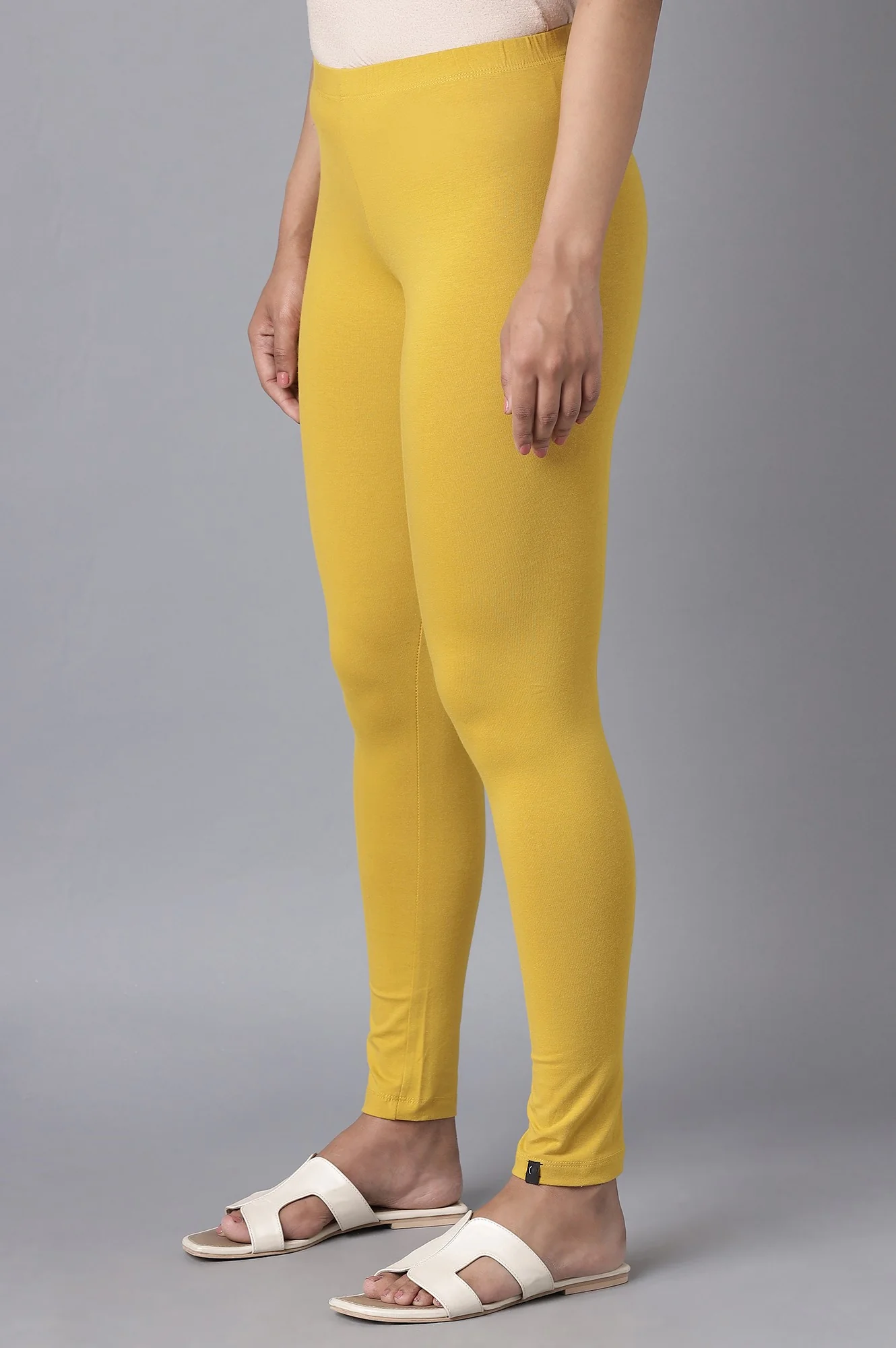 Yellow Solid Skinny Fit Cotton Tights With Elasticated Waistband
