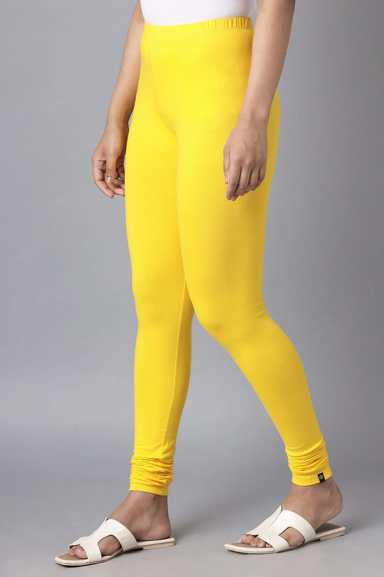 Cotton lycra churidar in yellow colour comes in midrise and has elasticated waistband.