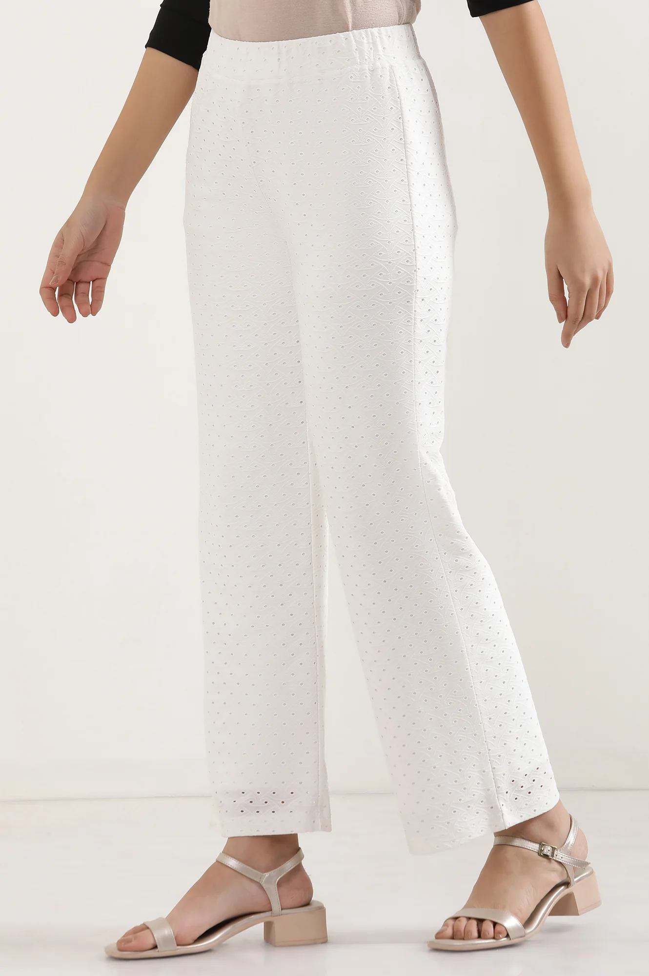 White Solid Straight Fit Palazzo With Elasticated Waist