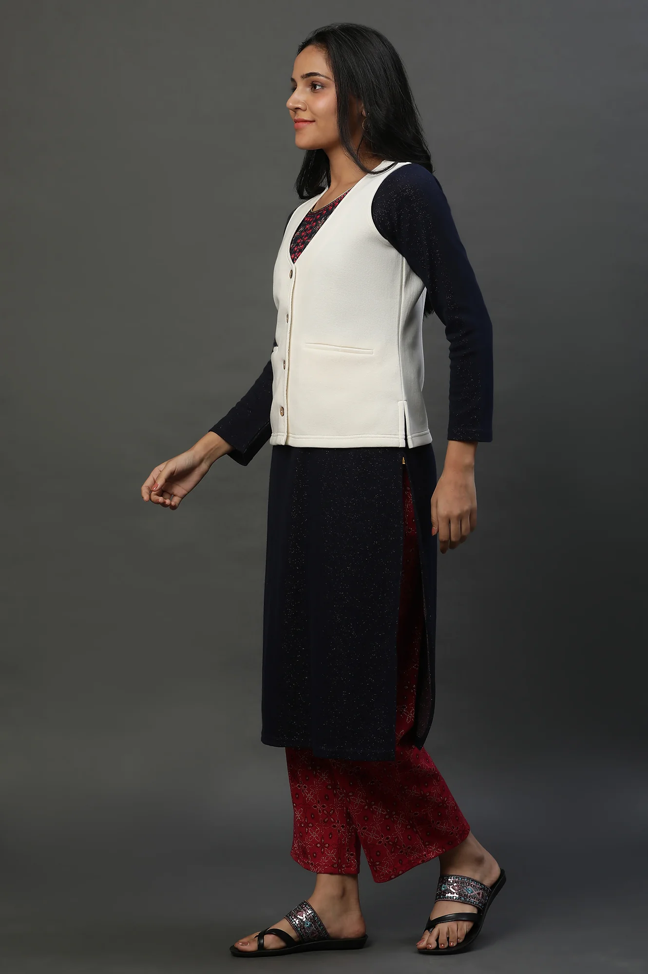 Introducing our exclusive sleevless jacket for your winter outerwear, a versatile piece of wardrobe essential is a must have, this will go along with your winter kurta or you can pair this up with any western top and you are ready to flaunt.
