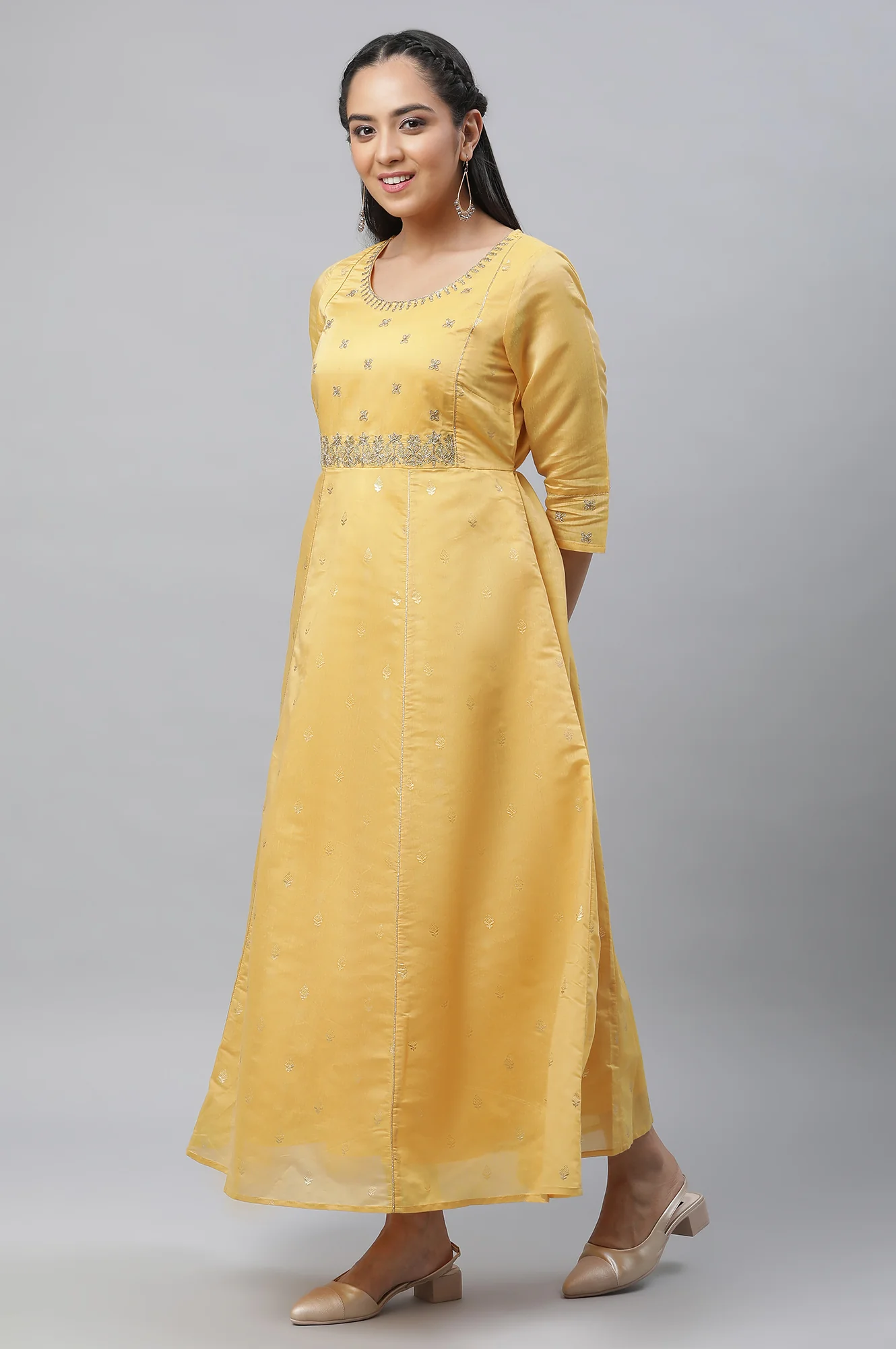 Yellow Embroidered Chanderi Festive Dress and Dupatta Set