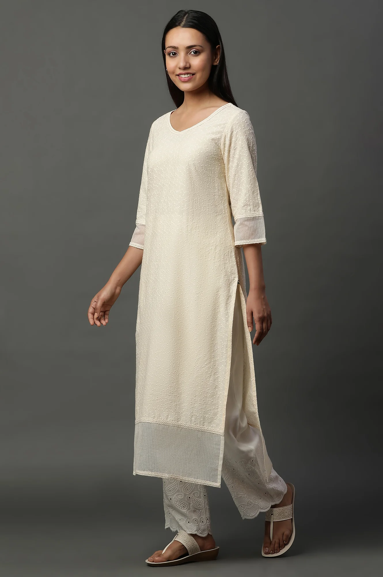 Paired with our schiffli embroidered straight pants and drape looks very elegant.
