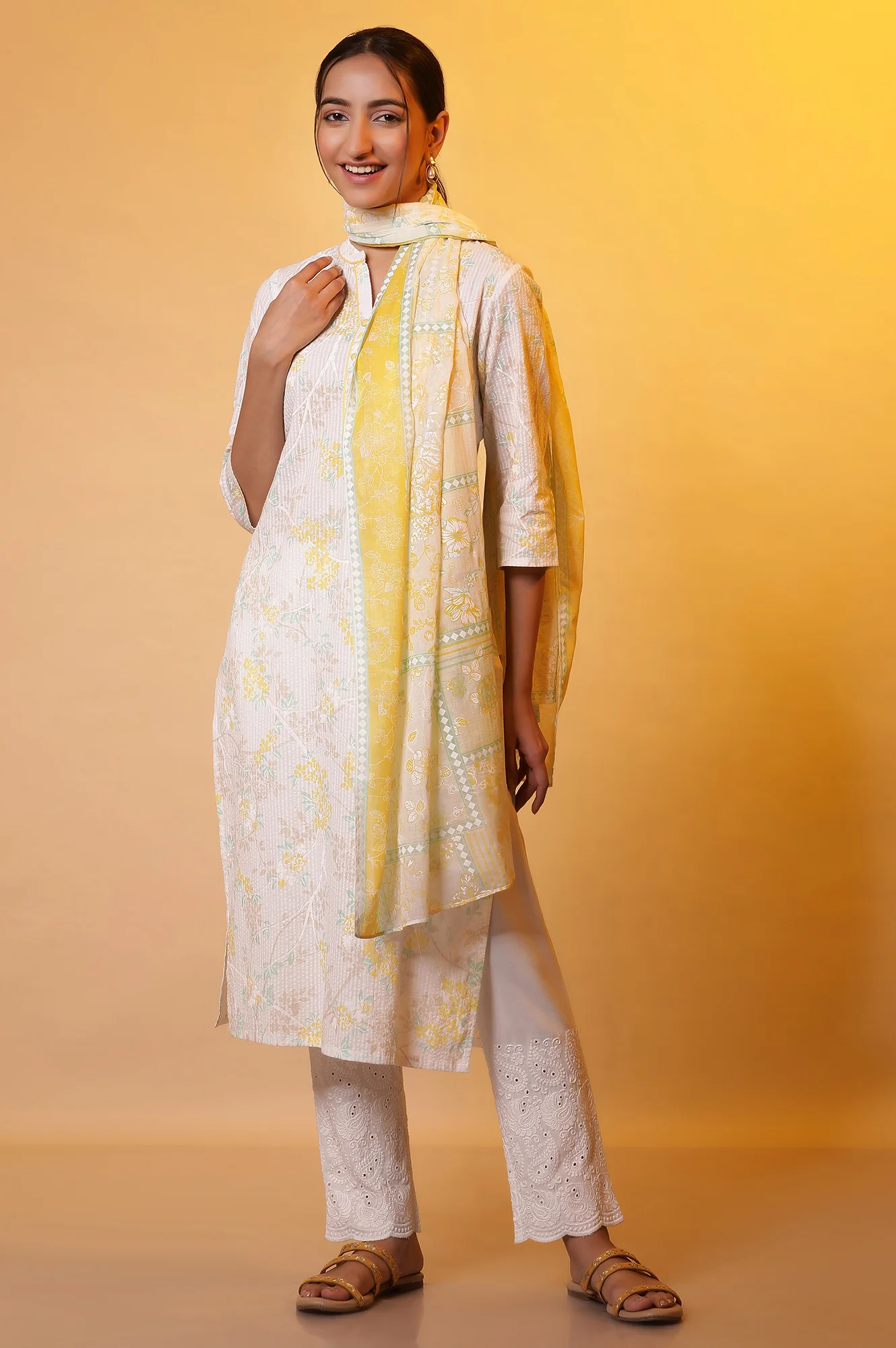 Style the stole with Aurelia's kurta and bottom to complete the set.
