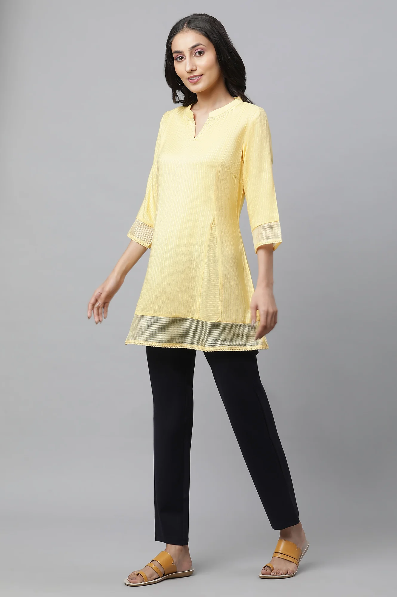 Step into vibrant, everyday fusion with this yellow panelled Western-style Aurelia kurti.